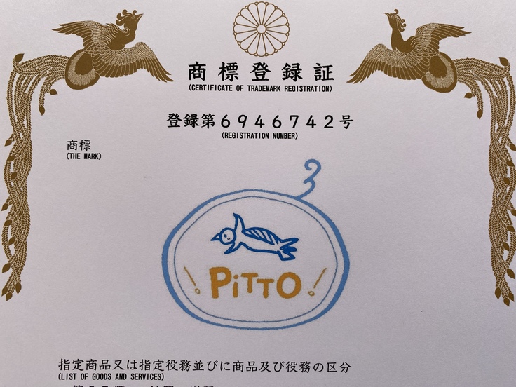 7月9日にPiTTO(ピット)の商標登録が済み、無事に登録証が届きました。