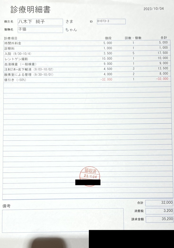 ▶︎ 4. 掲載している資料についてページ上に掲載している診断書や診療明細書などの資料は全て動物病院から掲載の許諾を得ております。