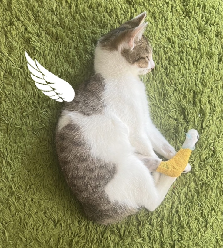これからこの子がもっともっと元気になって自由に走り回る姿や、子猫らしい無邪気な顔を見てみたいと思いました。