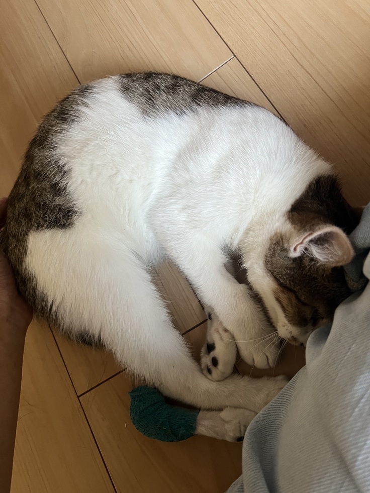 ▲足にべったり抱きつくカラー星人なアンジュちゃん🐈💕