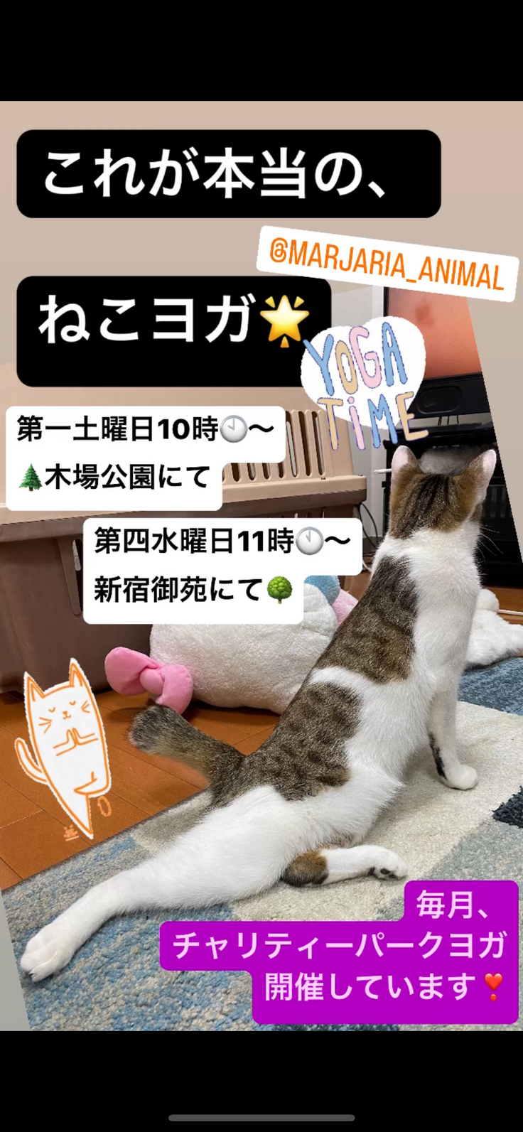 野良猫のTNR、保護や預かりから里親募集まで、長年たくさんの猫ちゃんたちをずっとのおうちへ導いてきた先生主催のチャリティーヨガです🐈⬛🌟
