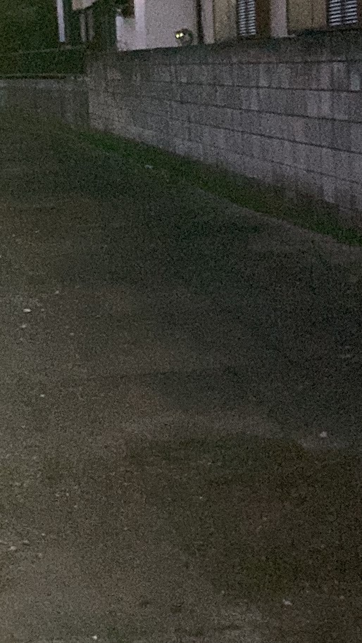 ※暗くて、子猫は写真には写らず、母猫の目の光だけ・・・