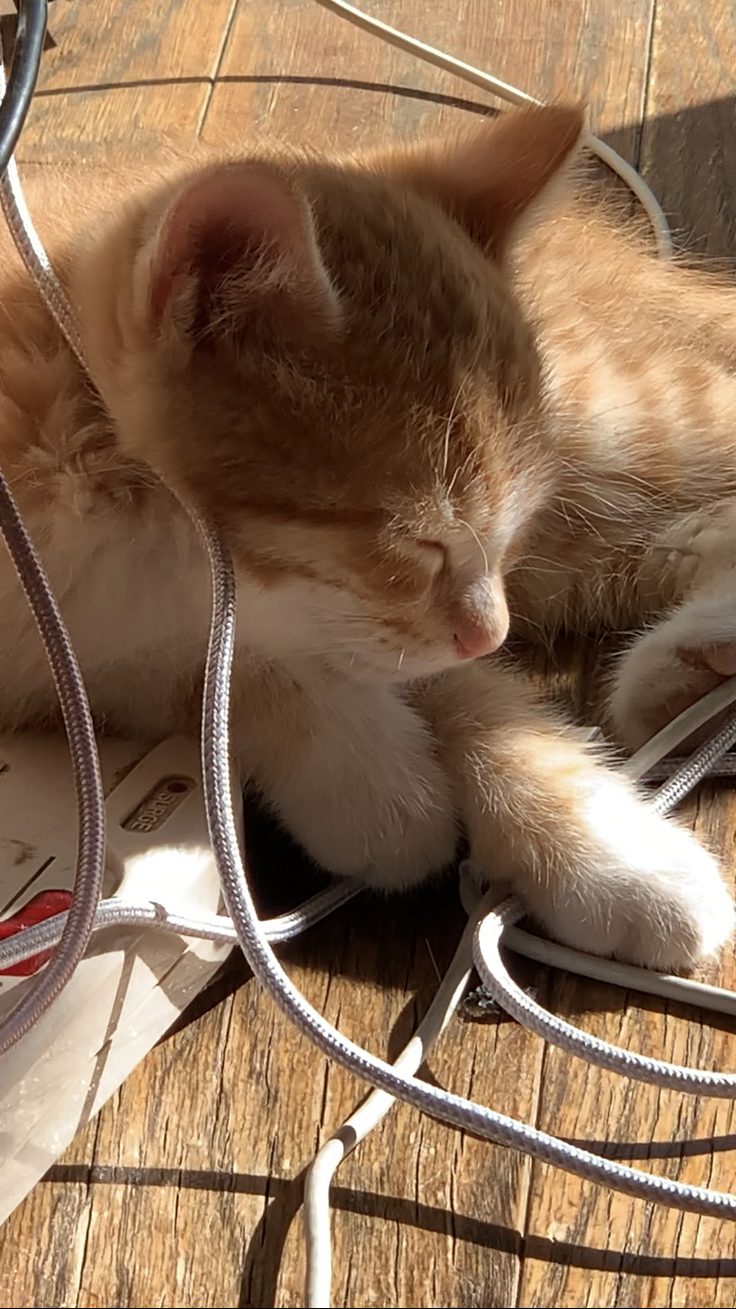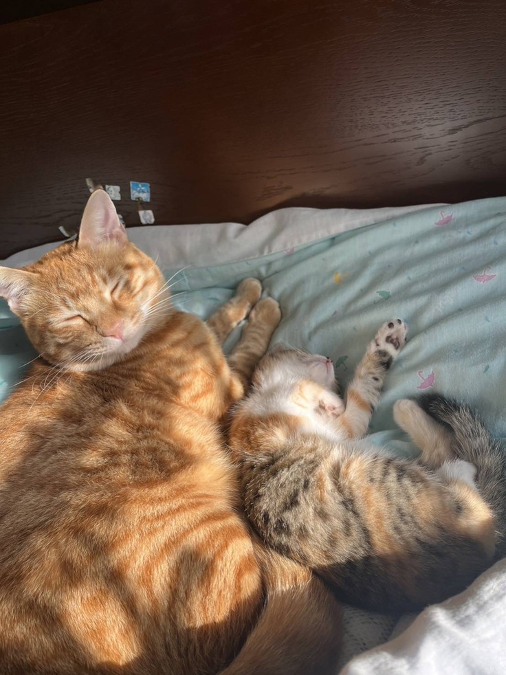 先住猫のポーサンと仲良く、昼間は一緒に遊び寝て
