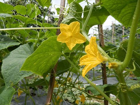 キュウリの花が咲き始めました。