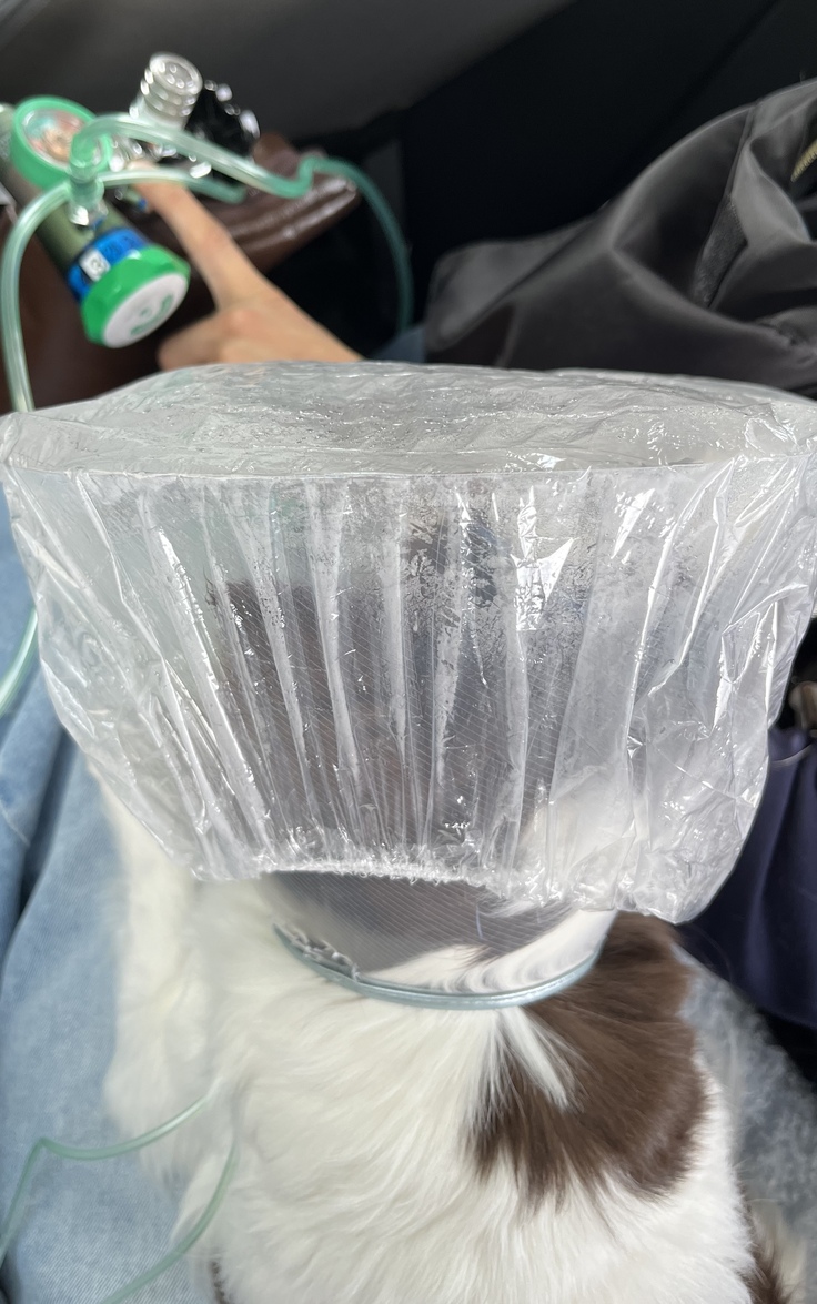 夜間の動物病院さんへ向かい直ぐに酸素室