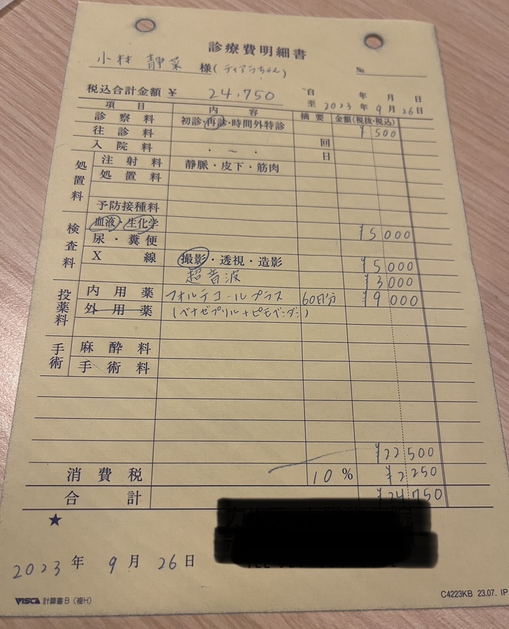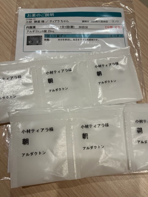 翌日、かかりつけの病院にて診察、お薬投薬。