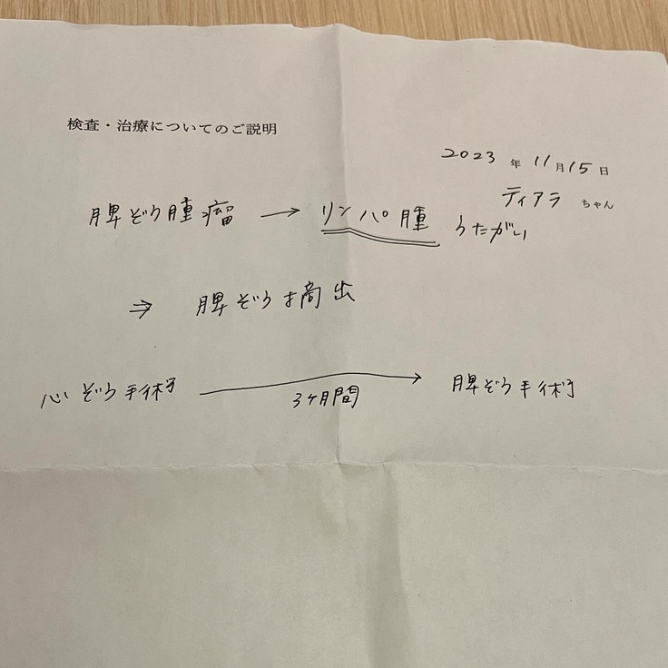 ティアラの脾臓(ひぞう)のリンパ腫について