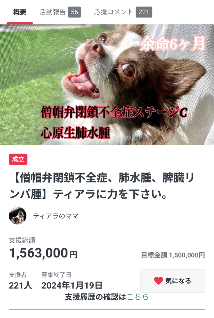 猫伝染性腹膜炎を患ったポンちゃんの明日をつないで頂けないでしょうか