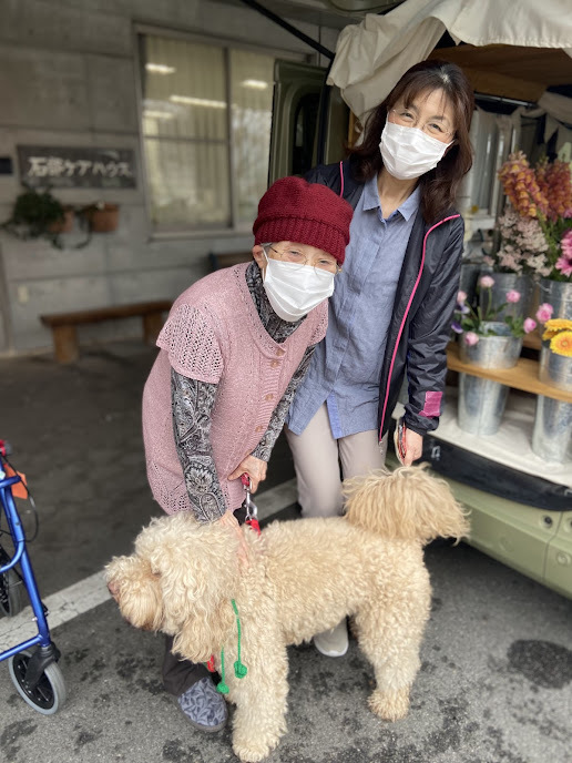 利用者さんからは「犬を飼っていたんだ。やっぱりわんちゃんは可愛いね。犬大好き!」「私、動物がすごく好きやねん!」とたくさん話しかけてくださいました。