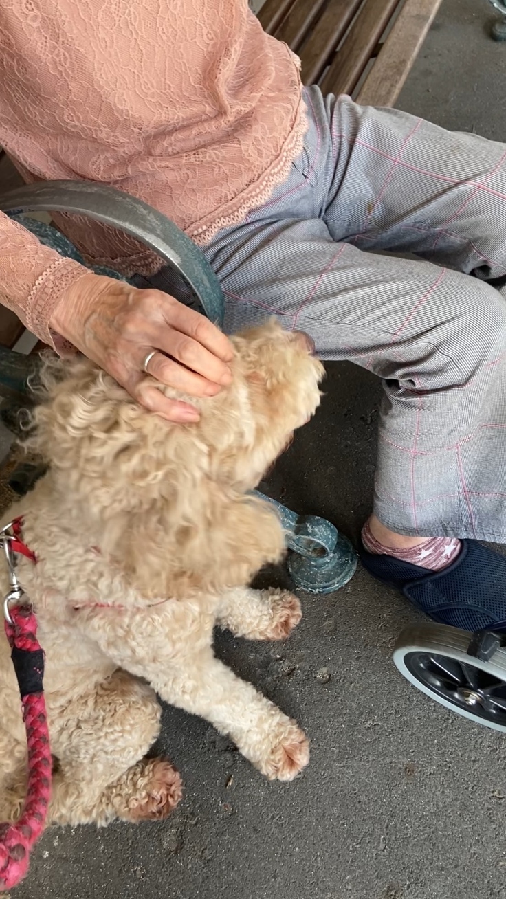 ケアハウスさんの玄関前へ到着すると、ことは「来たよ!」と言うかのように「わんわんっ」と声を出していました。