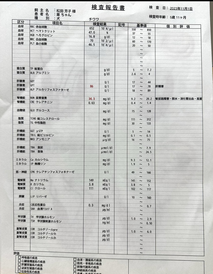 これが栗(クリル)の病名でした。↑すでに3種類の薬を服用しており、進行度もステージ3〜4を漂っている状況だということも聞き、愕然としました。そういう事だったのか、と。