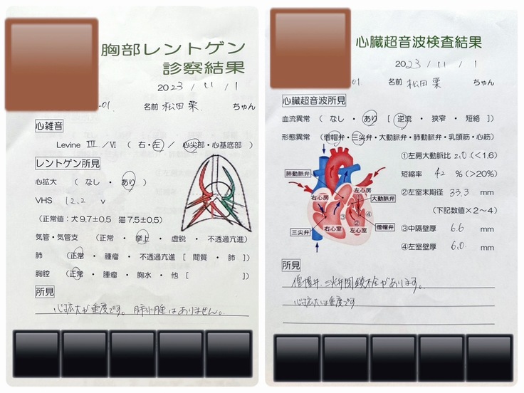 ステージから考えても、心不全や肺水腫(末期症状)に移行していてもおかしくない段階です。栗(クリル)の置かれている長さや状況を考えると、とても焦りました。