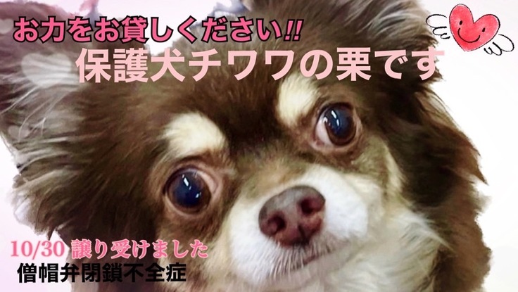 2023年10月30日、大阪府寺田町にある「保護犬カフェ」より迎えたばかりの元繁殖引退保護犬チワワ、栗(保護犬名、クリル)の僧帽弁閉鎖不全症の手術費用のご支援お願いをしたく、、このプロジェクトを立ち上げました。