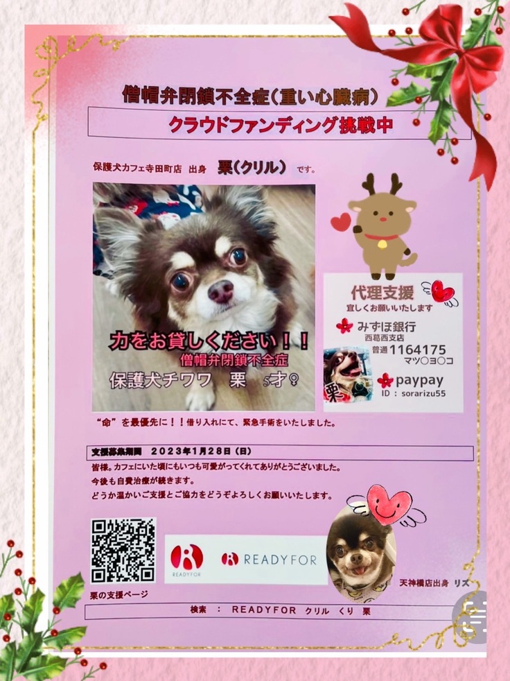 ❤️🔥クラウドファンディングでは、皆さまに今回の、200万円を越える僧帽弁閉鎖不全症の手術検査費用の、一部のご支援をお願いしております。どうか、よろしくお願いいたします🙇♀️