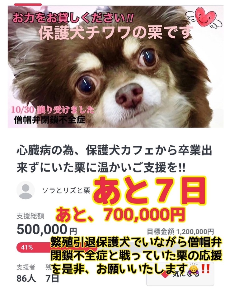栗のクラウドファンディングは28日までとなっており、残りはあと7日となっております。