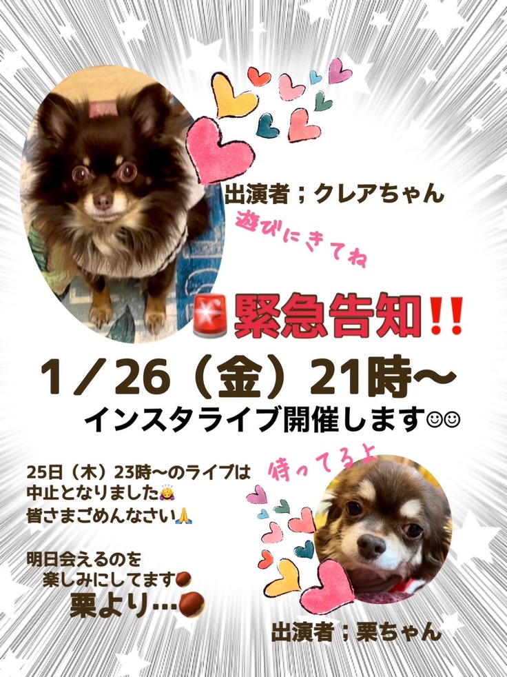 インスタグラムにてLIVEをやらせていただこうと思っております。