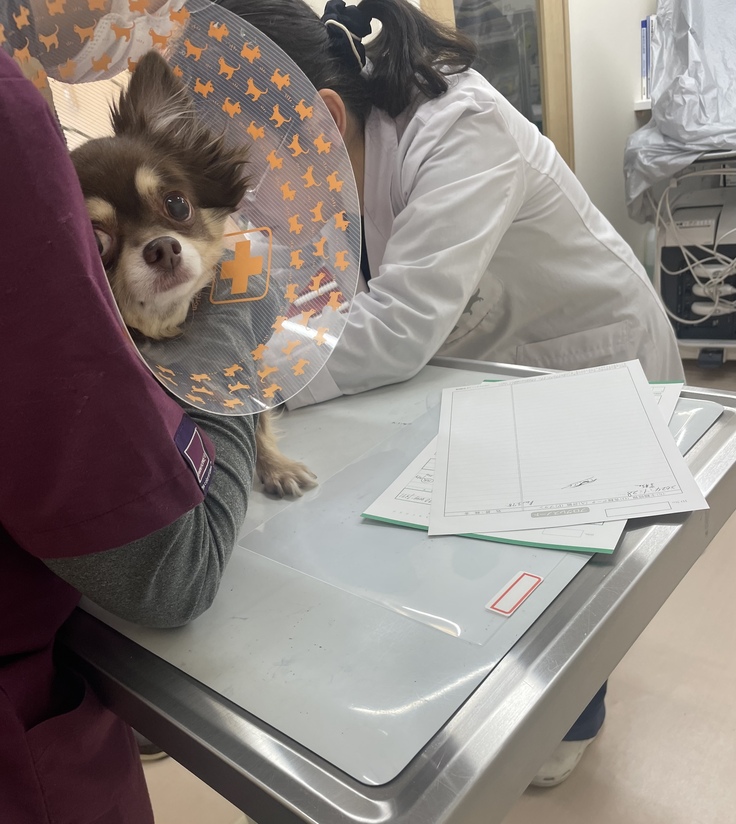 ひとまず飲み薬の抗生剤と塗り薬をもらいました。しばらくはカラーで過ごしてもらうことになりました🐶