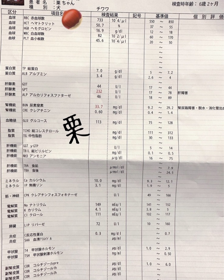 が、体重が前回の診察時より1キロ増えていたため、肝臓に負担がかかっているような数値…とのこと。