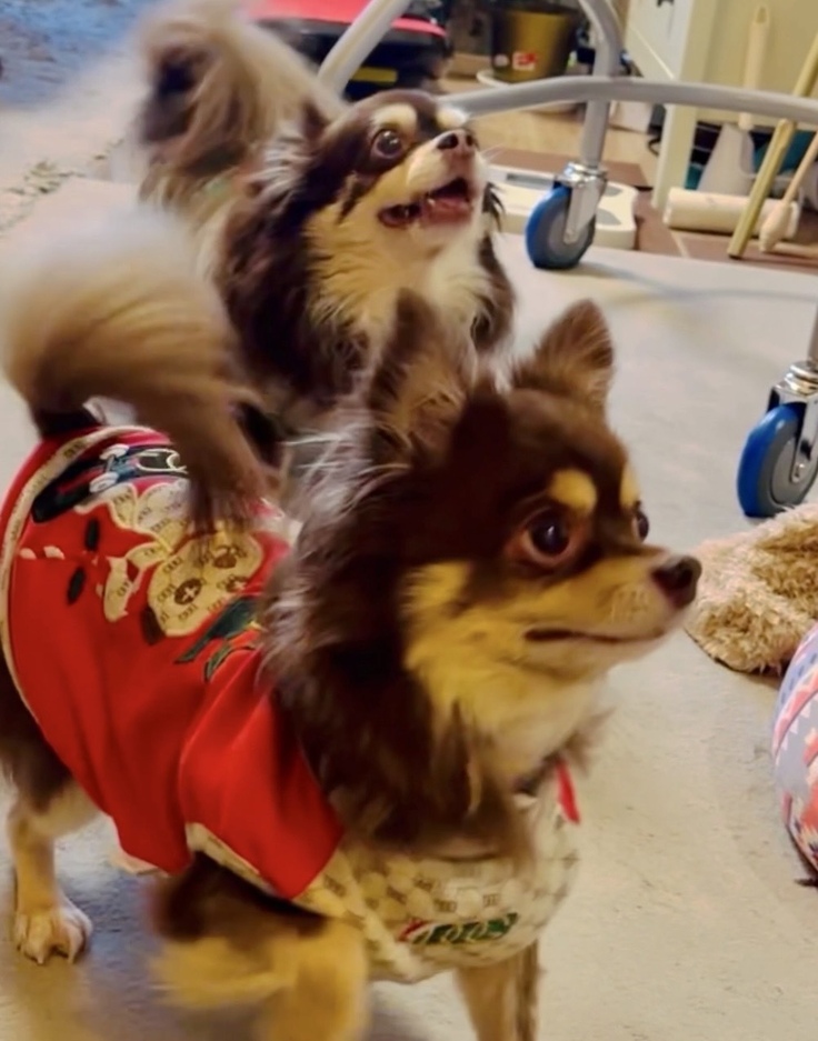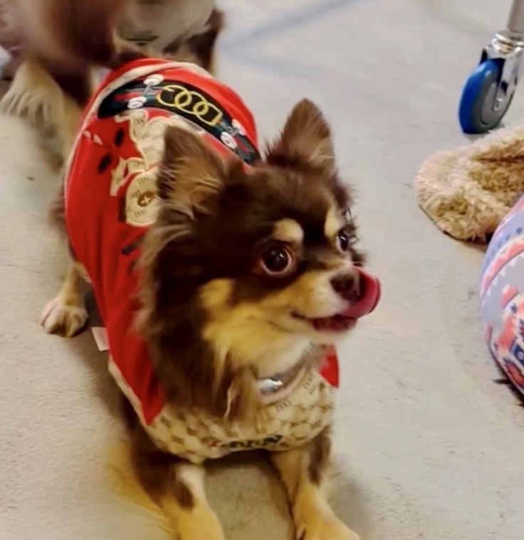 プレゼントの洋服を着て、跳び回るほど元気になりました栗ちゃんです。