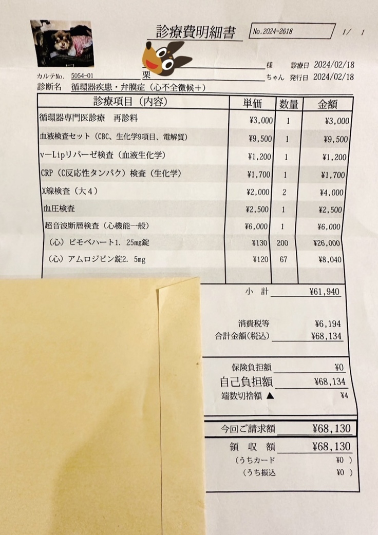 ※ 2/18 3か月検診の際の明細書になります。
