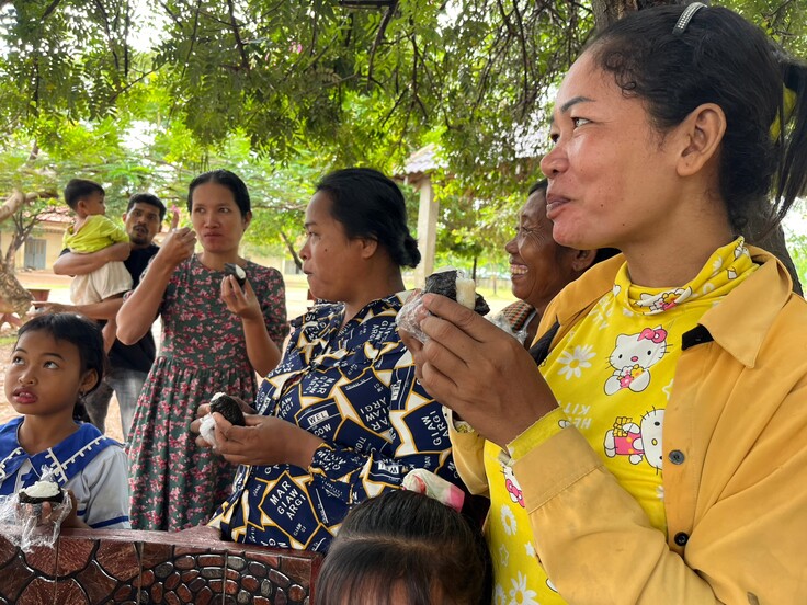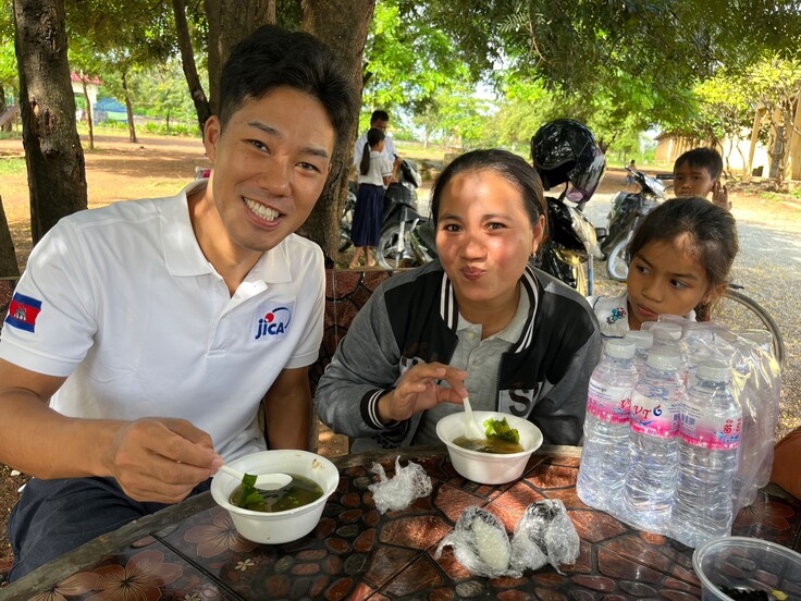 もちろん、カンボジアにはお米はありますが、こういった塩をまぶして、ノリで巻いて、食べる習慣はありませんので、皆さんは初めての体験です。