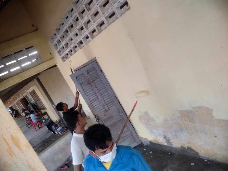 外壁の塗装です。担当するのは、もちろん先生方。経費の節約になります。