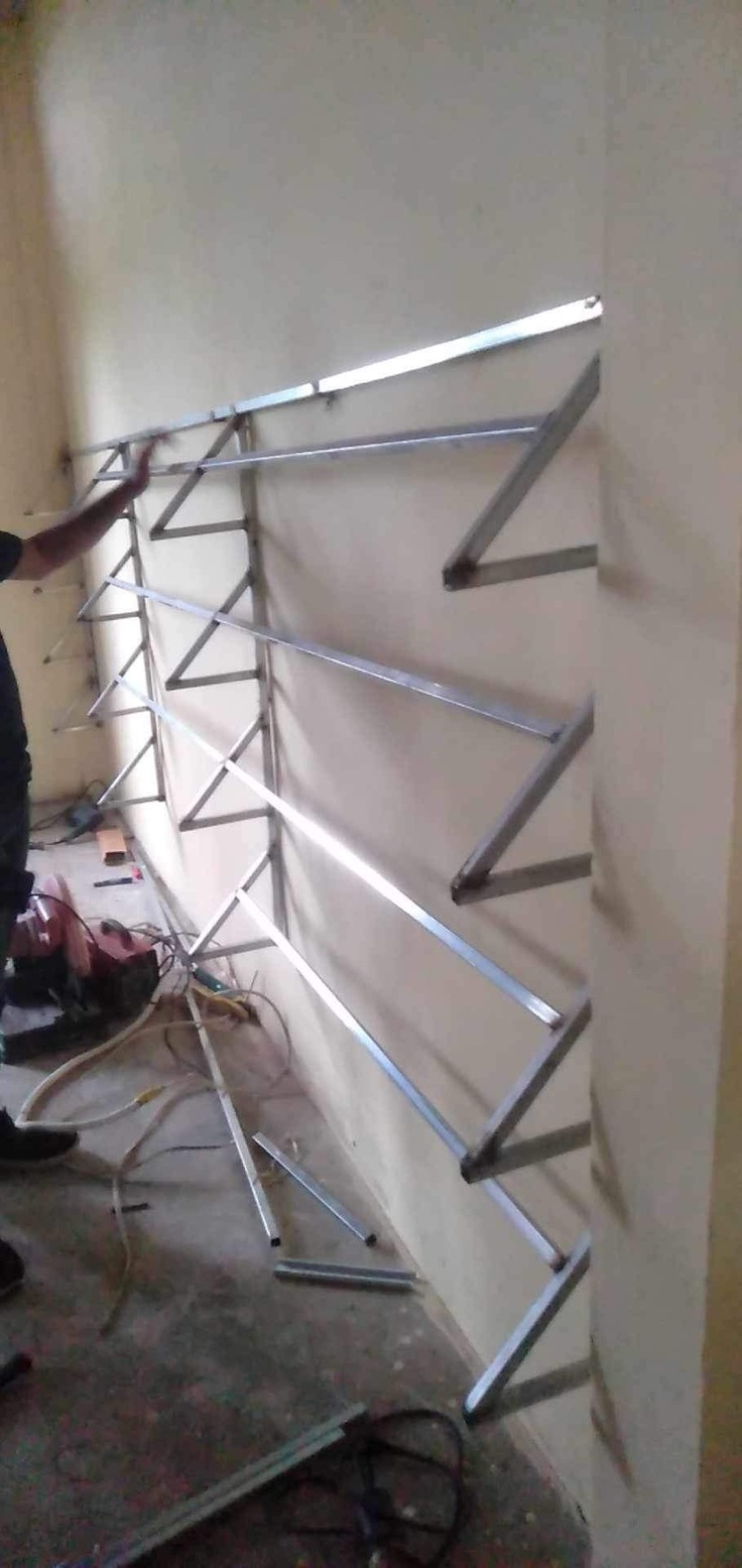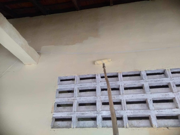 高所は、ローラー刷毛を使います。簡単な作業ではありませんね。