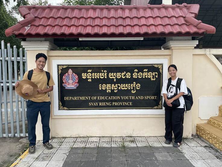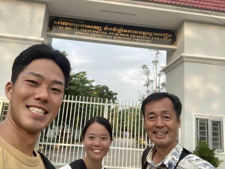 Svay Rieng Teacher Traning College 正門前で。