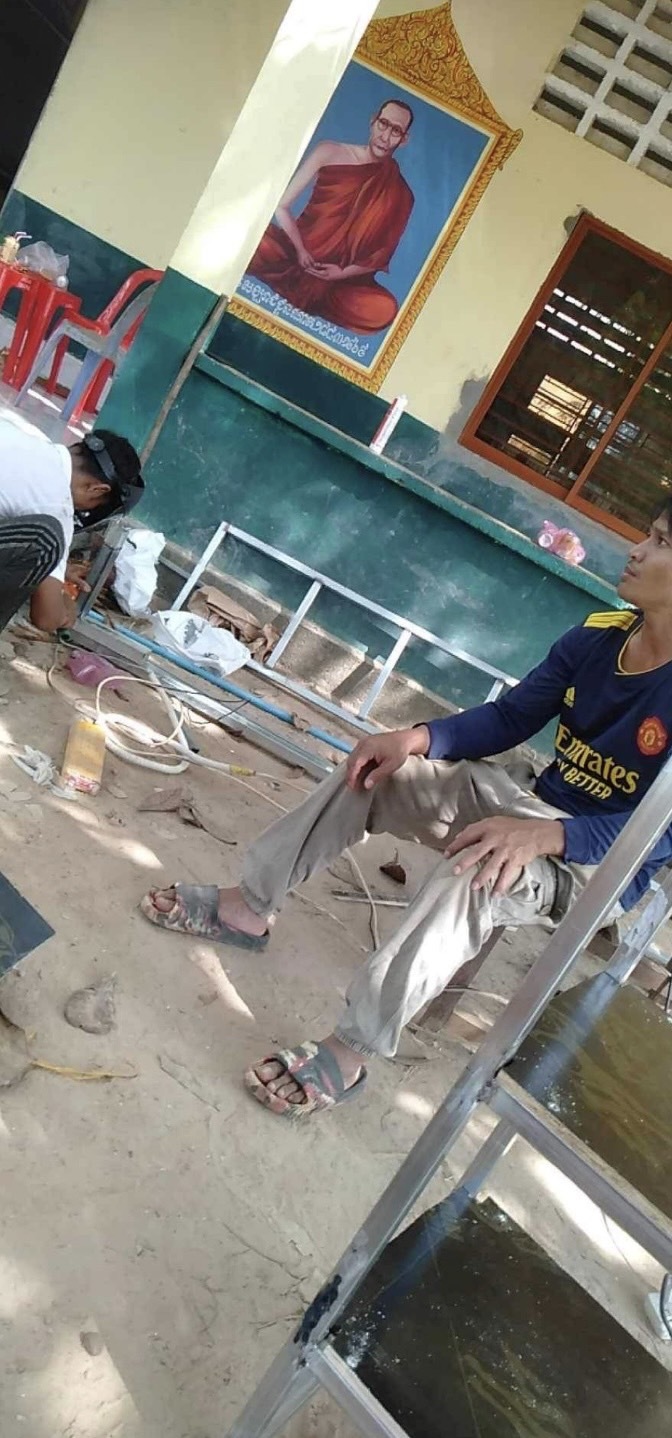 カンボジアの学校では、珍しいガラスの引き戸です。(日本では当たり前ですが・・・)