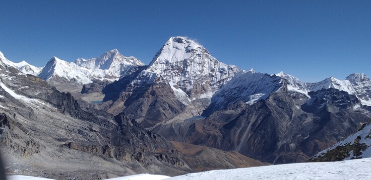標高5,000mを超えると、そこは酸素が平地の50%以下、最高気温も氷点下の極限の世界。樹木や草原も無くなり氷と砂礫や岩稜の荒涼とした世界ですが、乾季のヒマラヤでは暖かくまぶしい太陽、川や風の音、山々から吹いてくる冷たい風、氷河の上を散歩、紺碧の空に雪と氷のナイフリッジなど、人が本来持っている五感をフルに使って自然や展望を楽しむことができます。また、人が生活する標高5,000mまでのトレッキング中にはヒマラヤの文化や歴史、食、生活習慣、祭りなどに身近に触れることができるのも魅力の一つです。