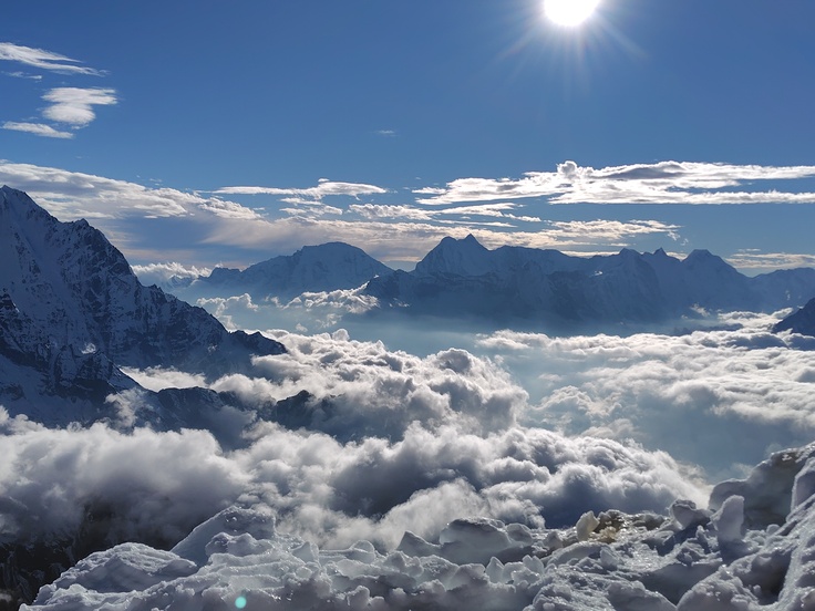 9月下旬のネパール大洪水に伴いエベレストエリアも60年ぶりの大雪にみまわれ登山ルート整備の遅れから大幅なスケジュール変更となりつつも、おかげさまで10月14日午前9時頃無事アマダブラム頂上(標高6,812m)に立つことができました。