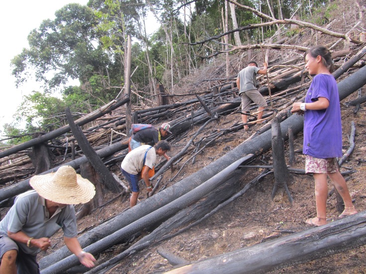 Ba Puakが焼畑農耕を始めたのは最近のことです。技法や種などは近くのケラビット人から提供を受けたようです。強い日差しを遮るものはなく、焼却灰に足をとられながらの作業はきつい労働です。棒で突いて開けた穴の中にプナンの子供たちが十数粒の種を撒いていく。素人目ながらも粗放な農法です。撒き方も雑で多くが穴の外に飛び出しています。プナン人にとって伝統的な炭水化物源は森の中に生育するサゴから採れる澱粉です。Ba Puakの人たちはいまでも白い米飯よりもサゴ澱粉の方をはるかに好みます。ただ、サゴはもう収穫が難しい。町に行けばビニール袋で売られているサゴ澱粉を手に入れられますが、彼らにとって高嶺の花です。代わりにいくらか値段が手ごろのキャッサバ澱粉をよく食べています。