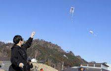 東日本大震災で被さいした岩手県釜石市の鵜住居地区で8日、イスラエル軍とイスラム組織ハマスの戦闘が続くパレスチナ自治区ガザの平和を願うたこ揚げが行われた。2012年に震災復興を祈るたこ揚げがガザで行われたのを機に、互いを励まそうと交流が続いている。釜石の子どもたち約30人は、澄み切った青空に舞うたこを見上げ、ガザの人々に思いを寄せた。