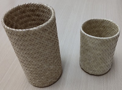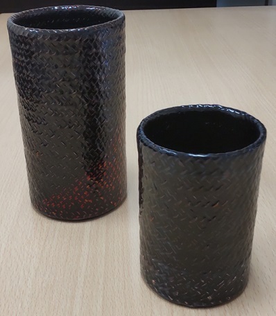 試作品紹介の2回目は、東ティモールの葉編細工(ペン立て)に津軽塗を施した商品です。