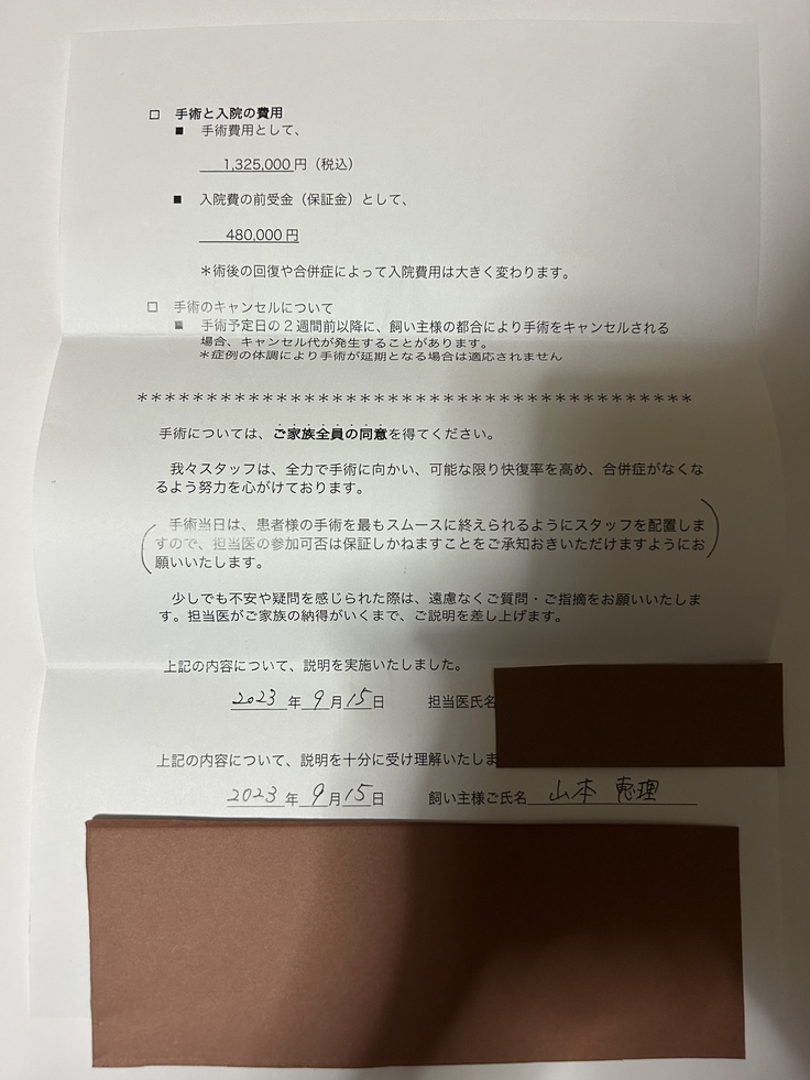 術後の経過により費用が大幅に変わる場合もあり皆様のご支援が必要でございます。