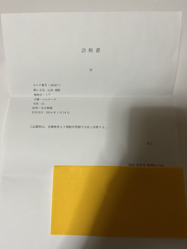 2年前にトワが僧帽弁閉鎖不全症と診断され