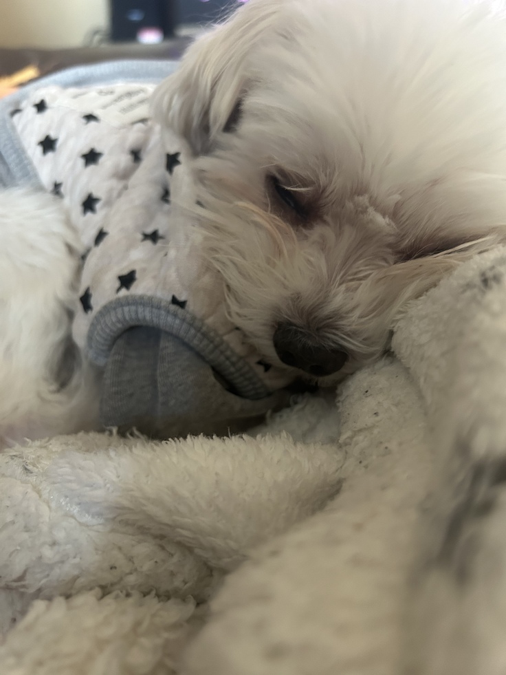 急に寒くなり、朝はあまり元気がありません💦いつもなら起きる時間でも体を丸めて寝ています。