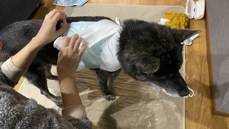 毛の流れによって包帯ごとズレていくのでテープで固定。