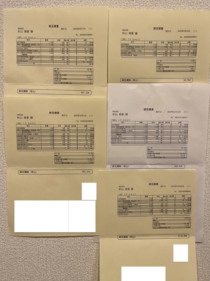 10月15日 89,336円(経過観察、薬処方)