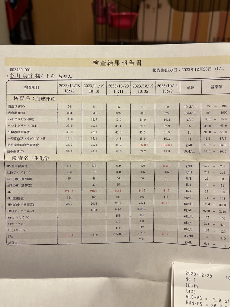 少し炎症反応が高く出ていますが、お腹の調子が少し悪い影響ではないかとの事です。