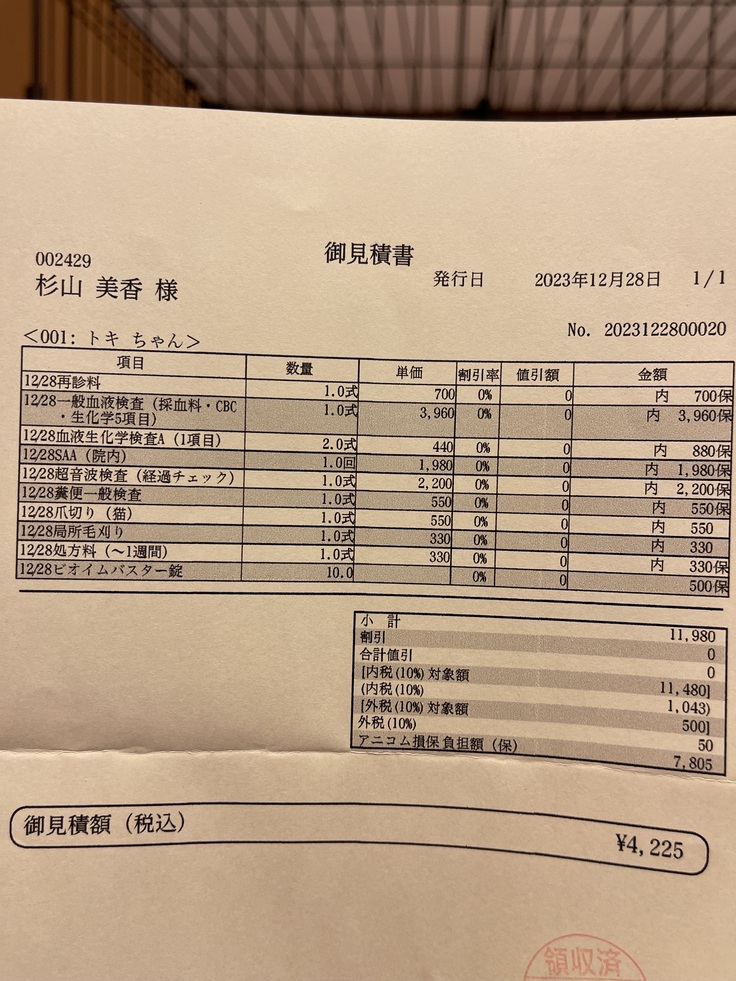 FIPは血中の蛋白、アルブミン、炎症反応が高くなりますが、今回の結果は正常範囲でした。