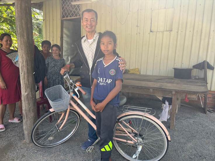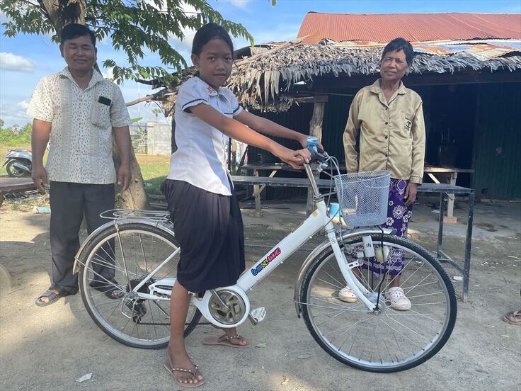 学校まで通う手段がなかったRちゃんに自転車を寄贈。