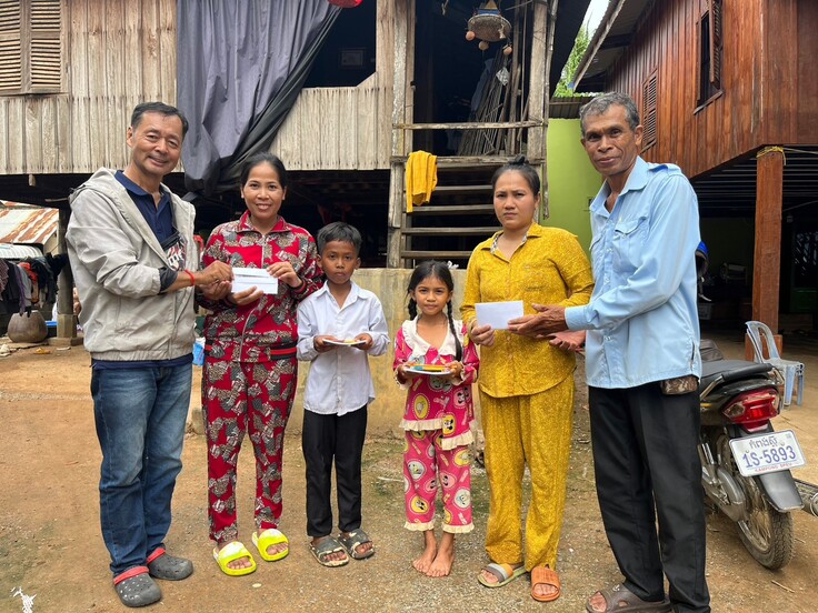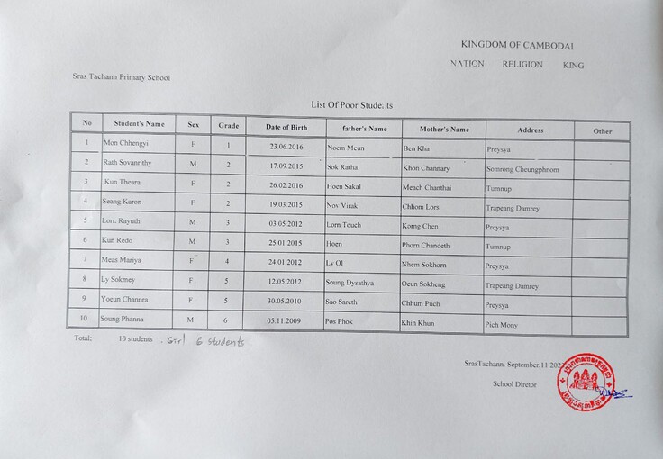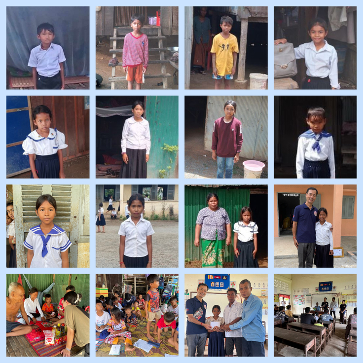 ①コンポンスプー州スタスターチャン小学校の10の貧困世帯への毎月の学費支援 各10$×10=100$