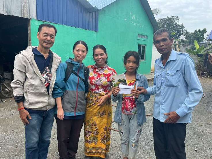 貧困家庭を訪問した際、生活や子どもの様子を聞き、継続して勉強できるように、金銭と文房具をお渡ししました。