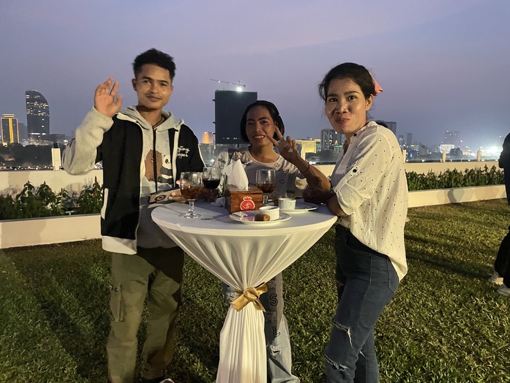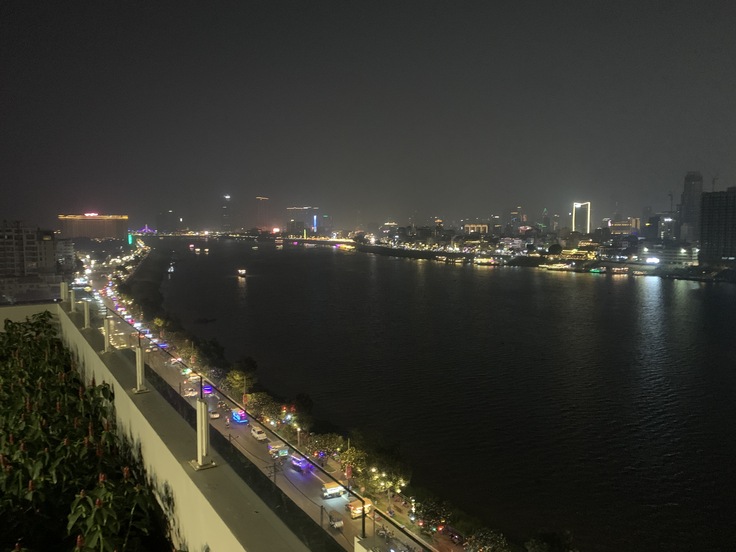 トンレサップ川をはさんで、対岸には高層ビル群を望みます。