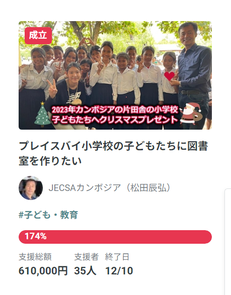 【JECSAカンボジア】ファンドレイジング(クラウドファンディング)の軌跡