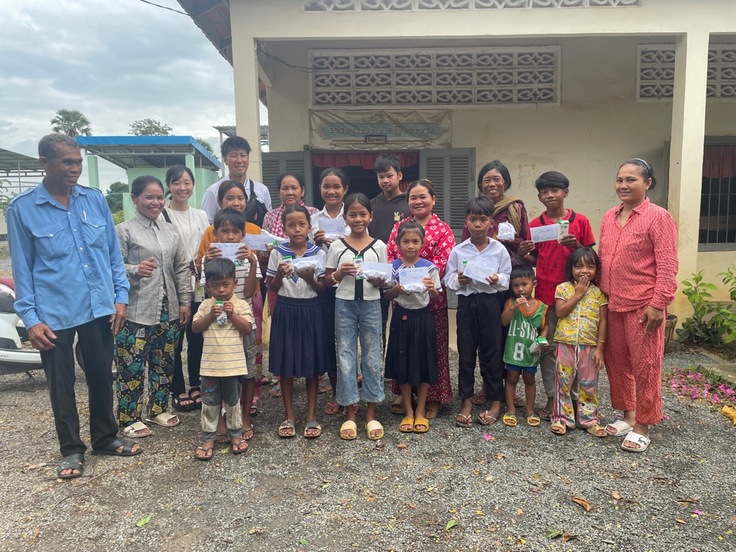 今回は、スタディーツアーにご参加中の現職の先生お二人もマンスリーサポートにご参加いただき、子供たちにパンと牛乳をご支援いただきました。
