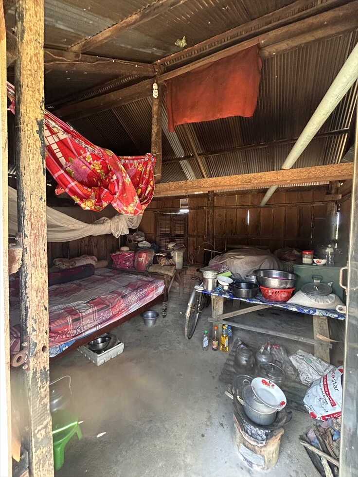 このご家族は、持ち家がないため、BoeungKhnar小学校の先生宅の納屋に住まわせてもらっています。