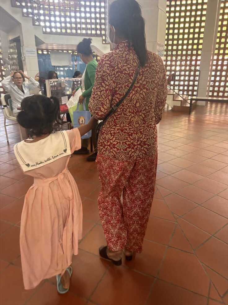 突発的に手足が麻痺した子供を、1時間40分かけて、プノンペンのカンタボファ病院に連れて行きました。
