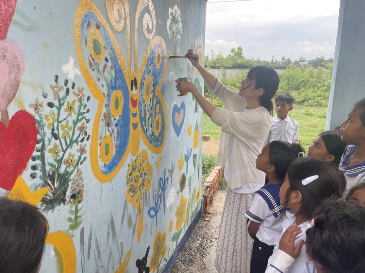 スラスターチャン小学校では、先日、トイレ壁画の塗り直し作業をしてきました。
